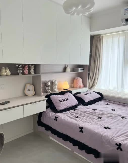 2、很多人都喜欢在小卧室装榻榻米,不能因为空间小、收纳少,就得花两三万整成甲醛屋,榻榻米是不适合睡觉的,并且开窗通风、擦玻璃要爬上榻榻米,又麻烦又累。扫床铺床单特别不方便,而且都是在窗户下面,很容易落灰,太不好打扫了。